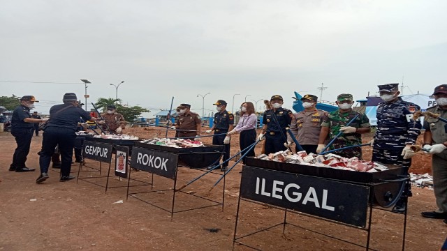 "Total nilai barang yang dimusnahkan oleh Kanwil DJBC Khusus Kepri dan KPPBC Tipe Madya Pabean B Tanjung balai Karimun yaitu Rp 5,460,750,131, (Lima milyar empat ratus enam puluh tujuh ratus lima puluh seratus tiga puluh satu rupiah) dengan total potensi kerugian negara mencapai Rp 3.501.404.526, (Tiga milyar lima ratus satu juta empat ratus empat ribu dua puluh enam rupiah)," ungkap Kakanwil saat pelaksanaan pemusnahan BB dilapangan Kanwil DJBC Khusus Kepri, Selasa (7/10/2025).