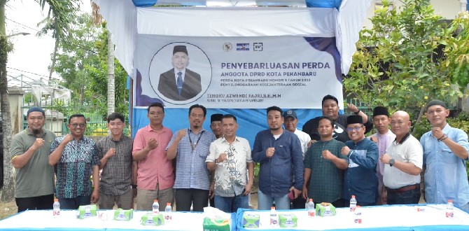 Kupaskasus.com, Pekanbaru - Wakil Ketua DPRD Pekanbaru Tengku Azwendi Fajari memaparkan Perda Nomor 3 Tahun 2023 kepada masyarakat di Jalan Bougenville Kecamatan Sail pada Jumat (28/11).